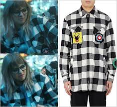 Taylor Swift S Checkered Shirt Blue Varsity Sweater And Studded Burgundy Converse From The End Game Music Video Checkered Shirt Varsity Sweater Taylor Swift