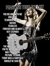 I Made This Tour Set List For The Fearless World Tour Comment If You Like It Taylor Swift Photoshoot Taylor Swift Fearless Taylor Swift Latest