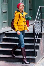 Taylor Swift Brightens Up A Dreary Winter Day With Lots And Lots Of Color Taylor Swift Outfits Taylor Swift Street Style Yellow Winter Coat